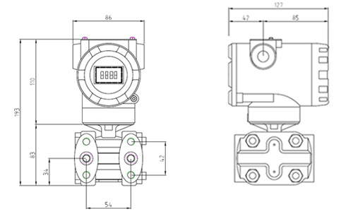 LCD(液晶)顯示,可設(shè)置循環(huán)或固定顯示壓力、溫度、電流、百分比與測(cè)量工程量單位等多種模式。 |